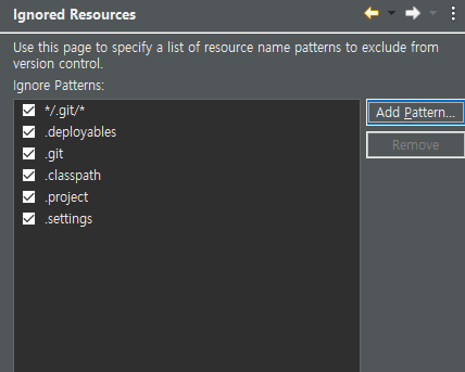window -> preferences -> Ignored Resources에 추가하면 좋다(충돌이 날 수 있기 때문)