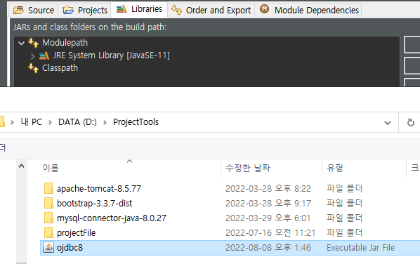 내 경우 Modulepath와 Classpath로 나눠졌는데 우선 Modulepath에 넣었다