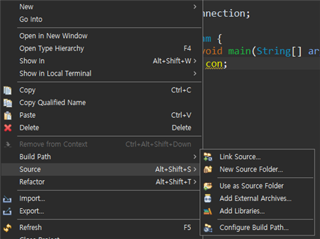 *위의 코드들은 java.sql.*로 import하여 사용된다