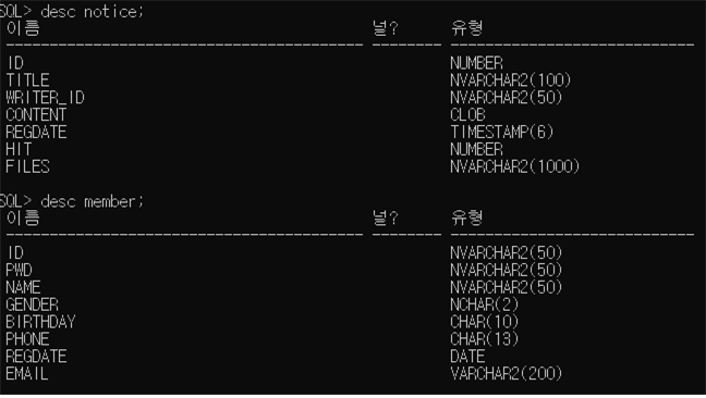 테이블 생성 후 테이블 조회 //추가되었는지 확인