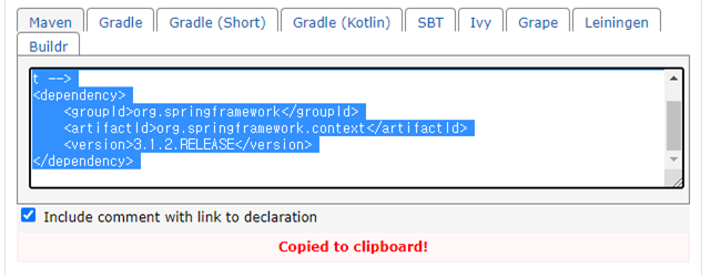 → Spring Context 클릭 → 필요한 버전 선택 후 복사