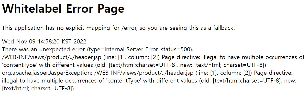 오류메세지를 읽어보면 알겠지만 header.jsp와 현재 jsp 파일의 인코딩 형식이 달라서 발생했다