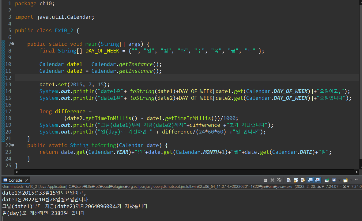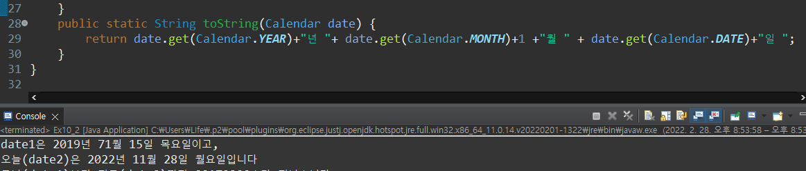 (그리고 사실 오늘 날짜인 2월 28일이 아닌 10월 28일로 출력되는것도 오류였다)