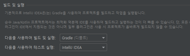 파일 -> 세팅 -> 빌드, 실행, 배포 -> 빌드 도구 -> Gradle에 들어가서